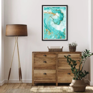 Affiche dans un cadre noir - Poster - Marbre turquoise avec des accents dorés dans une composition abstraite - 70x50cm - Sous la grande vague de l'ère Edo - Décoration murale moderne pour le salon et la chambre ARTTOR