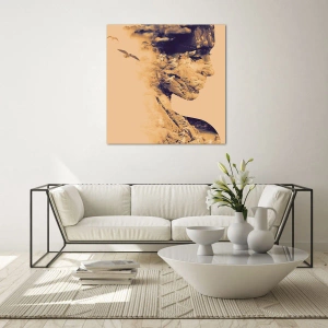 Impression sur verre - Image sur verre - Silhouette d'une femme avec un motif de paysage et d'oiseaux - 50x70cm - Beauté de la nature - Décoration murale moderne pour le salon et la chambre ARTTOR