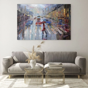 Impression sur verre - Image sur verre - Scène de ville la nuit avec pluie et lumières colorées - 50x70cm - Après-midi pluvieux en ville - Décoration murale moderne pour le salon et la chambre ARTTOR