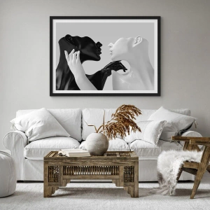 Affiche dans un cadre noir - Poster - Une composition en noir et blanc de deux visages en contact étroit. - 50x70cm - Attraction - désir - Décoration murale moderne pour le salon et la chambre ARTTOR