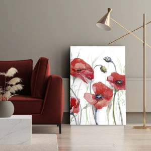 Impression sur toile - Image sur toile - Coquelicots à l'aquarelle sur un fond délicat - 50x70cm - Fleurs polonaises - Décoration murale moderne pour le salon et la chambre ARTTOR