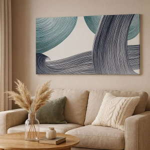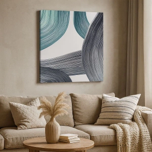 - Un tableau moderne aux lignes abstraites et fluides dans des tons de vert et de gris. Un motif subtil qui apporte harmonie et élégance à tout intérieur.