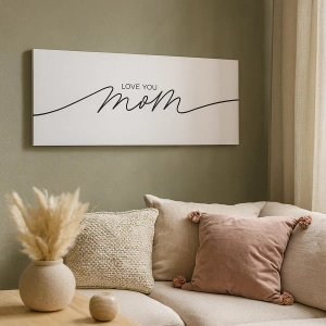 - Impression sur toile minimaliste de 70 x 50 cm avec l'inscription « Love You Mom » sur fond blanc. Un cadeau idéal ou une élégante pièce de décoration.