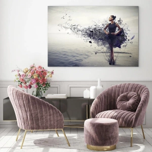 Ce produit, réalisé sur verre aux dimensions 70x50 cm, se caractérise par une impression de haute qualité, qui met en valeur les détails et les subtiles transitions de couleurs. Le format horizontal de l'image est parfait pour des espaces tels qu'un salon, une chambre ou un bureau moderne, soulignant leur caractère unique. Le style de la composition allie minimalisme et éléments futuristes, rendant cette décoration à la fois inspirante et élégante.