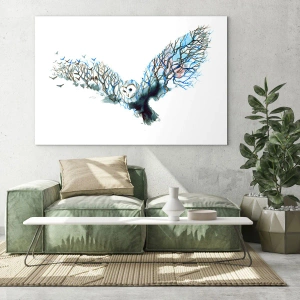 Impression sur verre - Image sur verre - Illustration d'un hibou avec des branches à la place des ailes - 50x70cm - Sur les ailes de la forêt - Décoration murale moderne pour le salon et la chambre ARTTOR