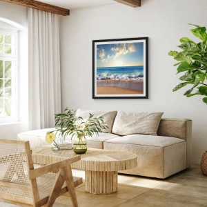 Choisissez l'affiche Plage avec vagues et horizon ensoleillé pour créer une atmosphère de vacances et de proximité avec la nature dans votre intérieur. C'est le cadeau ou la décoration idéal qui apportera chaleur et harmonie à n'importe quelle pièce.