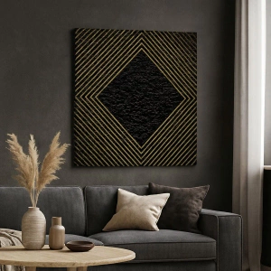 Impression sur toile - Image sur toile - Fond noir avec un motif géométrique de lignes dorées - 100x70cm - Géométrie dans un style glamour - Décoration murale moderne pour le salon et la chambre ARTTOR