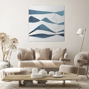 - Cette toile imprimée de 70 x 50 cm représente des formes abstraites dans des tons bleus sur fond blanc. Parfaite pour les intérieurs modernes, elle apporte subtilité et harmonie.