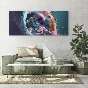 Impression sur verre - Image sur verre - Astronaute dans l'espace coloré - 70x50cm - porte des étoiles - Décoration murale moderne pour le salon et la chambre ARTTOR