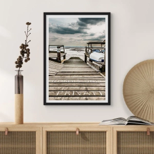 Affiche dans un cadre noir - Poster - Jetée en bois sur la mer - 50x70cm - Plage de minuit - Décoration murale moderne pour le salon et la chambre ARTTOR