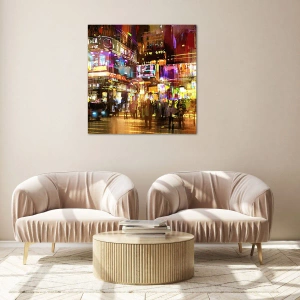 Ce tableau s'intègre parfaitement aux intérieurs modernes qui privilégient le minimalisme, la créativité et le design contemporain. Le motif des néons et du bruit de la rue confère à l'intérieur énergie et caractère unique. C'est le choix idéal pour les salons, les bureaux et les espaces créatifs qui souhaitent souligner le dynamisme et l'atmosphère de la vie urbaine.