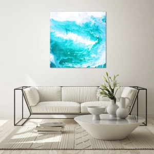 La peinture sur verre est faite sur un verre de 4 mm d'épaisseur. Les bords du verre ont une arête trapézoïdale mate. La tableau est sûr à l'utilisation et prêt à être accroché - il a des crochets en métal attachés à l'arrière du cadre et des entretoises en mousse permettant la régulation uniforme de la distance du tableau au mur.