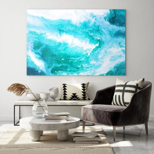 Impression sur verre - Image sur verre - Tourbillon abstrait dans les tons de bleu - 120x50cm - Au coeur de l'élément - Décoration murale moderne pour le salon et la chambre ARTTOR