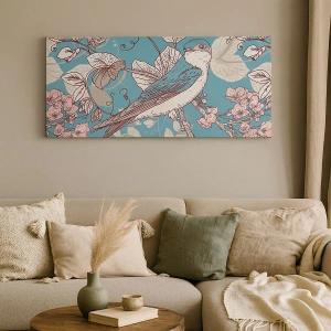 • Abstrait, Hirondelle, Oiseau, Botanique, Fleurs, Animaux, Pour le bureau, Pour le bureau, Pour la salle à manger, Pour le hall, Pour le salon, Pour la chambre, Bleu, Carré