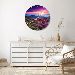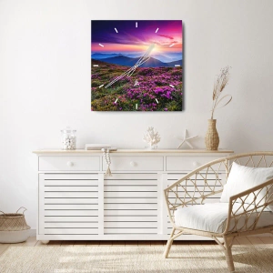 Horloge murale - Pendule murale - Prairie de montagne avec des fleurs au coucher du soleil - 30x30cm - Les herbes sentaient les grappes fraîches de la récolte - Décoration murale moderne pour le salon et la chambre ARTTOR