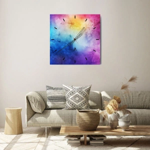 Horloge murale - Pendule murale - Un dégradé coloré dominé par le bleu, le violet et le jaune. - 30x30cm - Presque au septième ciel - Décoration murale moderne pour le salon, la cuisine et la chambre ARTTOR
