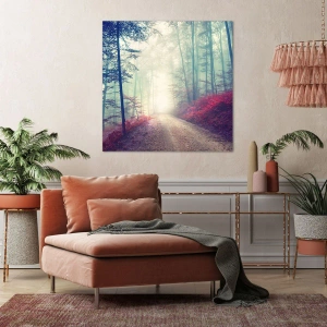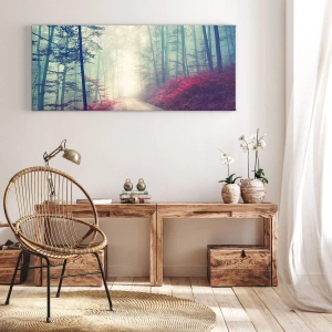 - Un tableau représentant un chemin forestier magique entouré de brouillard et de couleurs subtiles, parfait pour les intérieurs pleins de paix et d'harmonie.