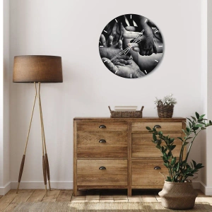 Horloge murale - Pendule murale - Mains noires et blanches de différentes générations - 30x30cm - Être humain - Décoration murale moderne pour le salon et la chambre ARTTOR