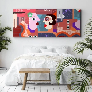 Impression sur toile - Image sur toile - Figures abstraites aux couleurs vives - 70x50cm - Les yeux dans les yeux - Décoration murale moderne pour le salon et la chambre ARTTOR