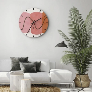 Horloge murale - Mouvement doux des formes - Formes abstraites dans des tons de rose et d'orange avec une ligne ondulée