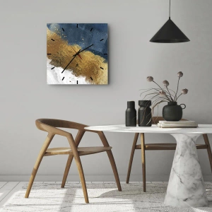 Horloge murale - Pendule murale - Une composition abstraite dans des tons d'or, de bleu et de blanc. - 30x30cm - Les couleurs de l’été - Décoration murale moderne pour le salon et la chambre ARTTOR
