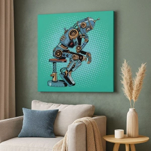 Impression sur toile - Image sur toile - Robot penseur de style pop art sur fond vert - 100x70cm - Au-dessus de l'essence de l'être - Décoration murale moderne pour le salon et la chambre ARTTOR