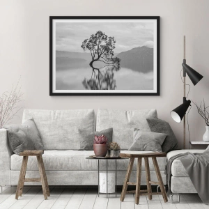 Affiche dans un cadre noir - Poster - Un arbre solitaire se reflète dans l'eau calme - 50x70cm - Un tel pays existe - Décoration murale moderne pour le salon et la chambre ARTTOR