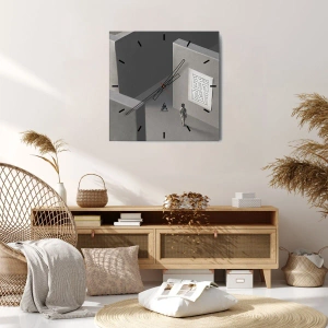 - Cette horloge murale, représentant un personnage devant un labyrinthe entouré de béton, est une forme artistique riche en symboles. Sa palette de couleurs minimaliste lui confère un caractère réfléchi et moderne.