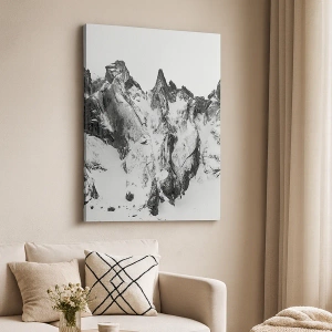 Impression sur toile - Image sur toile - Des sommets enneigés en noir et blanc - 50x70cm - Crête dangereuse de granit - Décoration murale moderne pour le salon et la chambre ARTTOR