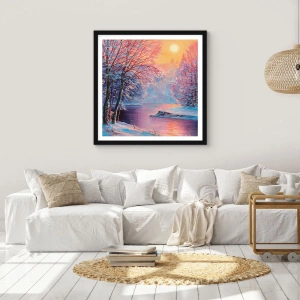 Affiche dans un cadre noir - Poster - Paysage d'hiver avec une rivière dans la lueur du soleil couchant - 50x70cm - Couleurs d'hiver - Décoration murale moderne pour le salon et la chambre ARTTOR