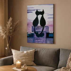 - Ce tableau représente des chats noirs perchés sur un toit au clair de lune, rendu à l'aquarelle. Parfait pour les intérieurs romantiques et artistiques, ce tableau mesure 70 x 50 cm.
