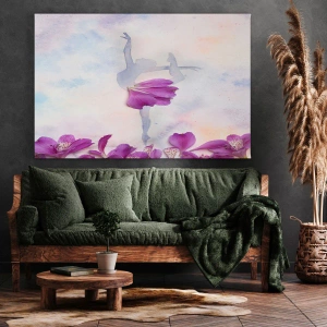 Impression sur toile - Image sur toile - Une danseuse en robe à pétales de fleurs sur fond pastel - 70x50cm - Délicat comme une fleur - Décoration murale moderne pour le salon et la chambre ARTTOR