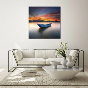 « Bonne nuit arrive » est un tableau qui capture un moment de paix et de réflexion. Le motif principal est un bateau en bois solitaire, flottant paisiblement à la surface du lac. En arrière-plan, une vue panoramique du coucher de soleil colore le ciel de nuances d'orange, de rose et de bleu marine. Cette combinaison unique de lumière et d'eau confère à ce tableau une harmonie qui crée une atmosphère idéale pour la détente et la tranquillité. Il sera parfait dans une chambre ou un salon, où il deviendra l'élément principal de votre décoration.