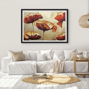 - Ce tableau artistique représentant des coquelicots aux tons chauds apporte harmonie et élégance à tout intérieur. Idéal pour un salon, une chambre ou un bureau.