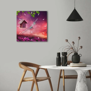 Horloge murale - Pendule murale - Un paysage pittoresque avec un nichoir et un coucher de soleil - 30x30cm - Invitation à dîner - Décoration murale moderne pour le salon et la chambre ARTTOR