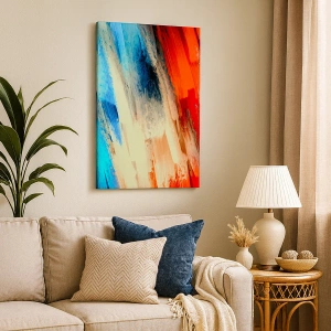 Impression sur toile - Image sur toile - Coup de pinceau abstrait dans les tons bleu et orange - 50x70cm - Une cascade de couleurs - Décoration murale moderne pour le salon et la chambre ARTTOR