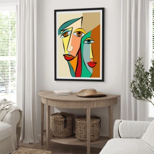 « Couple cubiste » est une affiche moderne représentant deux visages abstraits de style cubiste, inspirée de l'esthétique des maîtres de l'art abstrait. Des formes géométriques caractéristiques et des lignes dynamiques confèrent à l'image un caractère unique qui la distingue des œuvres classiques.
