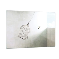 Impression sur verre - Image sur verre - Une cage ouverte et un colibri s'envolant à la lumière du jour - 120x80cm - Dans son élément - Décoration murale moderne pour le salon et la chambre ARTTOR