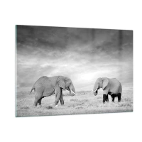 Impression sur verre - Image sur verre - Deux éléphants dans la savane dans des tons de noir et blanc - 120x80cm - Le gris est beau - Décoration murale moderne pour le salon et la chambre ARTTOR