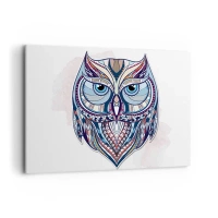 Impression sur toile - Image sur toile - Chouette géométrique dans les tons bleu et beige - 100x70cm - Chouette ornementale élaborée - Décoration murale moderne pour le salon et la chambre ARTTOR