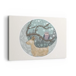 Impression sur toile - Image sur toile - Un cerf et un hibou dans un paysage nocturne de conte de fées - 100x70cm - Une nuit de conte de fées en forêt - Décoration murale moderne pour le salon et la chambre ARTTOR
