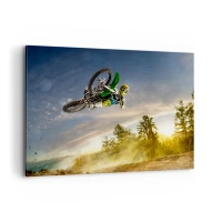 Impression sur toile - Image sur toile - Motocycliste dans un saut dynamique - 100x70cm - Activez les émotions ! - Décoration murale moderne pour le salon et la chambre ARTTOR