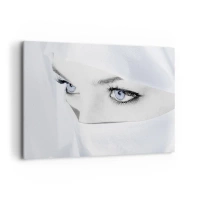 Impression sur toile - Image sur toile - Portrait d'une femme aux yeux bleus cachés derrière un voile blanc - 100x70cm - Directement des mille et une nuits - Décoration murale moderne pour le salon et la chambre ARTTOR