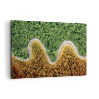 Impression sur toile - Image sur toile - Une route sinueuse à travers la forêt vue à vol d'oiseau - 120x80cm - Frontieres et differences - Décoration murale moderne pour le salon et la chambre ARTTOR