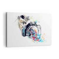 Impression sur toile - Image sur toile - Appareil photo aquarelle avec des détails colorés - 120x80cm - Dans l'oeil de l'objectif - Décoration murale moderne pour le salon et la chambre ARTTOR