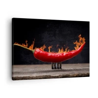 Impression sur toile - Image sur toile - Poivron rouge flamboyant sur une fourchette - 70x50cm - Un apéritif enflammé - Décoration murale moderne pour le salon et la chambre ARTTOR