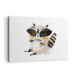 Impression sur toile - Image sur toile - Adorable raton laveur tenant une tasse de couleur pastel - 120x80cm - Mon ami le raton laveur - Décoration murale moderne pour le salon et la chambre ARTTOR