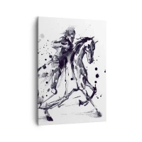 Impression sur toile - Image sur toile - Aquarelle noir et blanc d'un cavalier sur un cheval au galop - 50x70cm - Chevalier noir - Décoration murale moderne pour le salon et la chambre ARTTOR