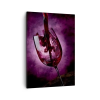 Impression sur toile - Image sur toile - Du vin rouge versé dans un verre sur fond de fumée violette - 50x70cm - Écarlate? Carmin? Non, rubis. - Décoration murale moderne pour le salon et la chambre ARTTOR