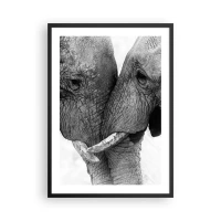 Affiche dans un cadre noir - Poster - Gros plan de deux éléphants en noir et blanc - 50x70cm - Confession sincère - Décoration murale moderne pour le salon et la chambre ARTTOR